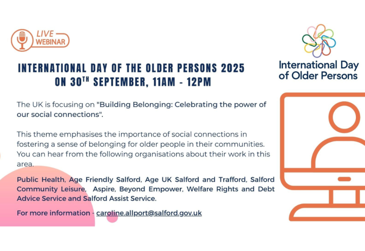 There will be a Webinar taking place for International Day of Older People on Tuesday September 30th 11 - 12.15pmThis year’s UK theme is Building Belonging: Celebrating the power of our social…