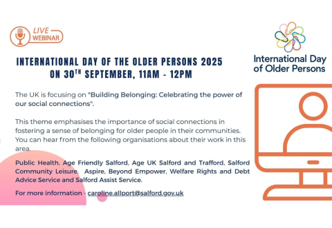 The Webinar is inviting professionals, volunteers, older adults, and their families to join us to find out more of what is available in Salford.