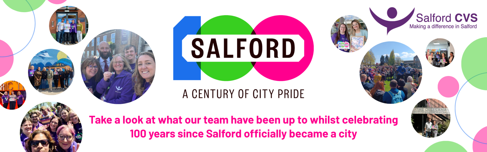 Salford CVS (Community and Voluntary Services) is the city-wide infrastructure organisation for the Voluntary, Community and Social Enterprise (VCSE) sector; providing specialist information, advice, development support and opportunities for influence and collaboration. We provide support for organisations to establish and develop including training for their staff, volunteers and trustees. Our Volunteer Centre (Volunteer Centre Salford) provides support for individuals who want to volunteer and assistance for organisations developing volunteer programmes. In 2019 we celebrated a 100 years since our creation – a century of ‘Making a Difference in Salford’.