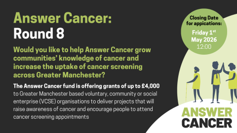 The Answer Cancer fund is offering grants of up to £4,000 to GM based voluntary, community & social enterprise (VCSE) organisations to deliver projects that will: