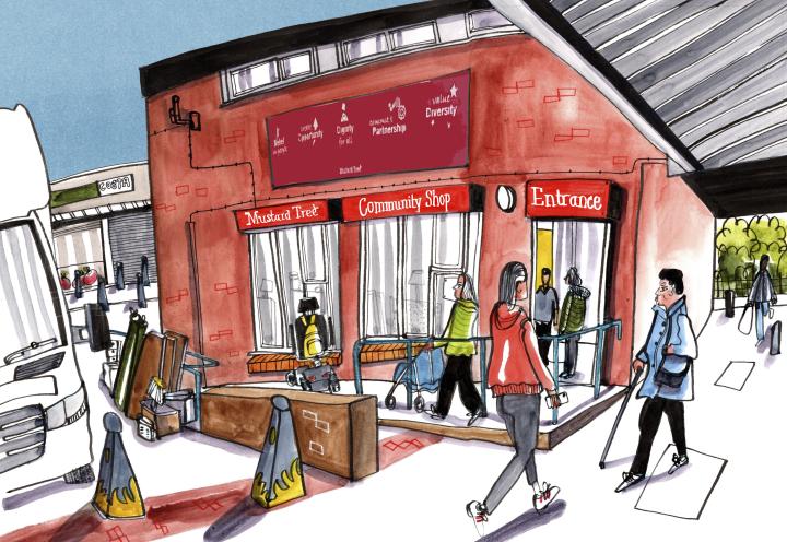 The calendar features twelve illustrations from the charity’s three hubs in Manchester (Ancoats) and Salford (Eccles & Little Hulton), including scenes from its Community Shops, Food Clubs…