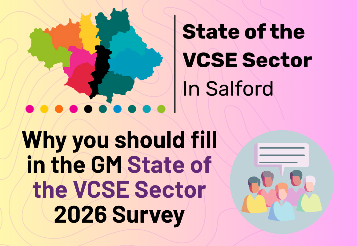 It is an important opportunity for voluntary, community and social enterprise (VCSE) groups and organisations across Salford and Greater Manchester to explain what is happening on the ground. The findings will be used to influence public bodies, funders and commissioners, so it is vital that they understand the reality of the sector’s work, pressures and impact.